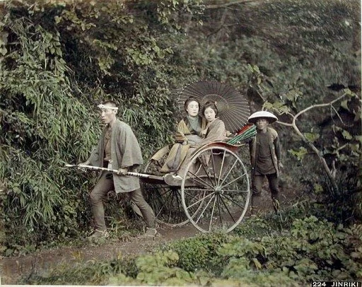 Kusakabe Kimbei (attributed), Jinrikisha (Rickshaw), ca. 1860–1900. Hand-colored albumen photograph. Public domain. Wikimedia Commons.
