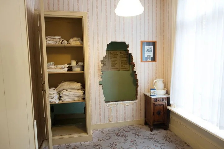 Corrie ten Boom recorded her family struggles in Amsterdam during the Nazi occupation in her famous book The Hiding Place. In their efforts to hide Jews from persecution, the family’s home was raided, and her sister Betsie was taken to the Ravensbruk concentration camp where she died on December 16, 1944. Corrie was also imprisoned at this camp. Pictured is Corrie’s room where the Jews and members of the Dutch resistance hid during the Nazi raids.